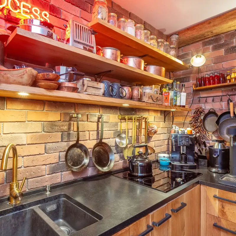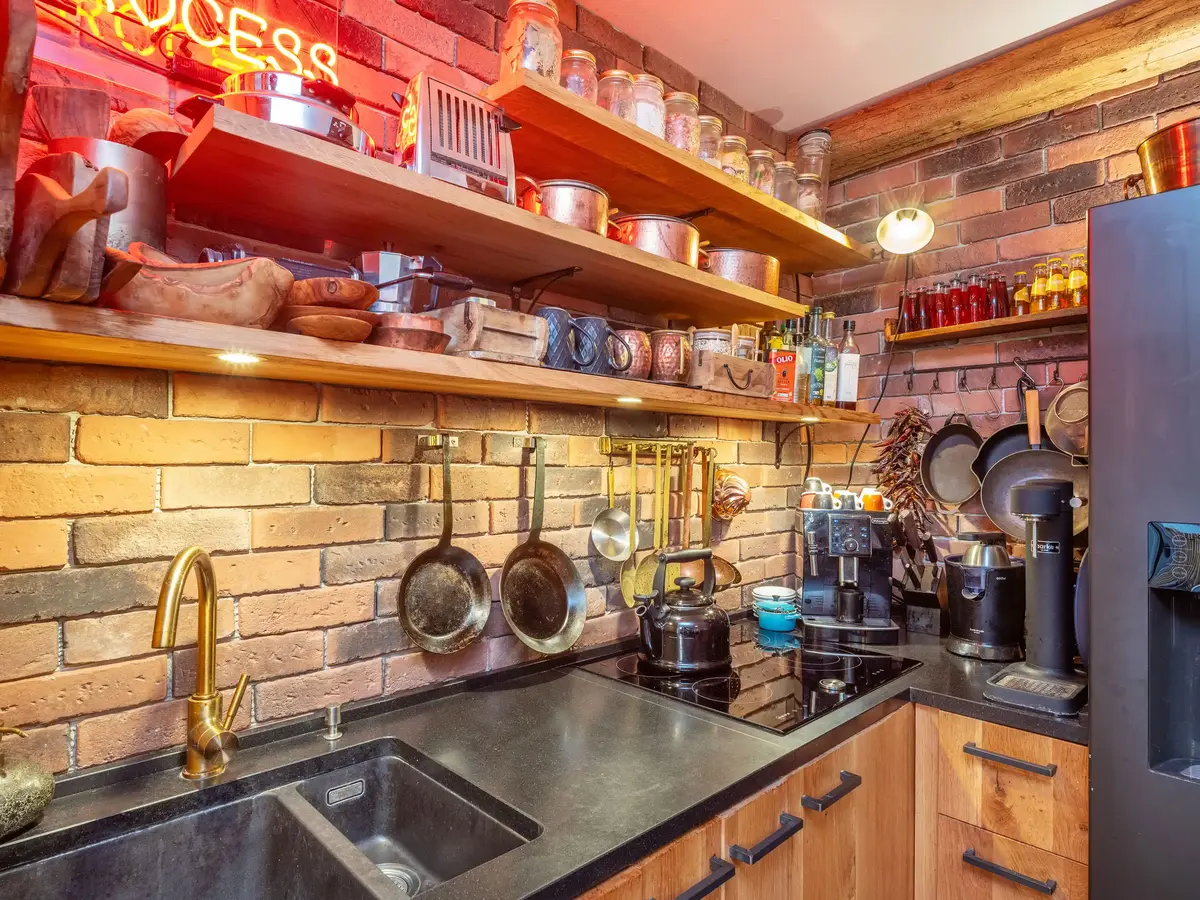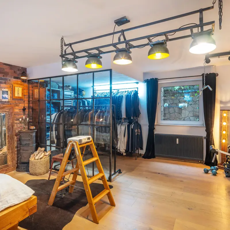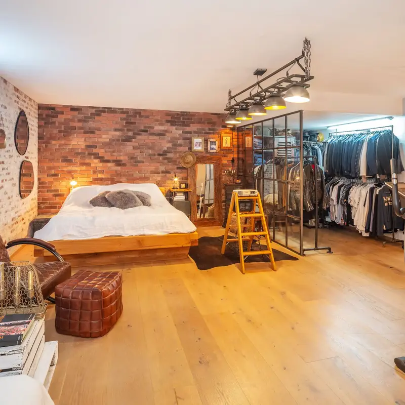 Das Industrial-Loft-Apartment erstreckt sich über zwei Ebenen und bietet auf rund 100 m² eine außergewöhnliche Kulisse für Foto-Shootings und Filmaufnahmen. Offenes Design, individuelle Möbel, hochwertige Metallelemente und warme Holzakzente schaffen ein authentisches, urbanes Ambiente mit echtem Loft-Feeling.