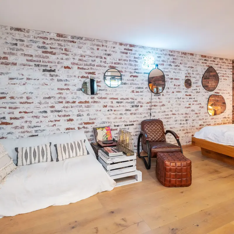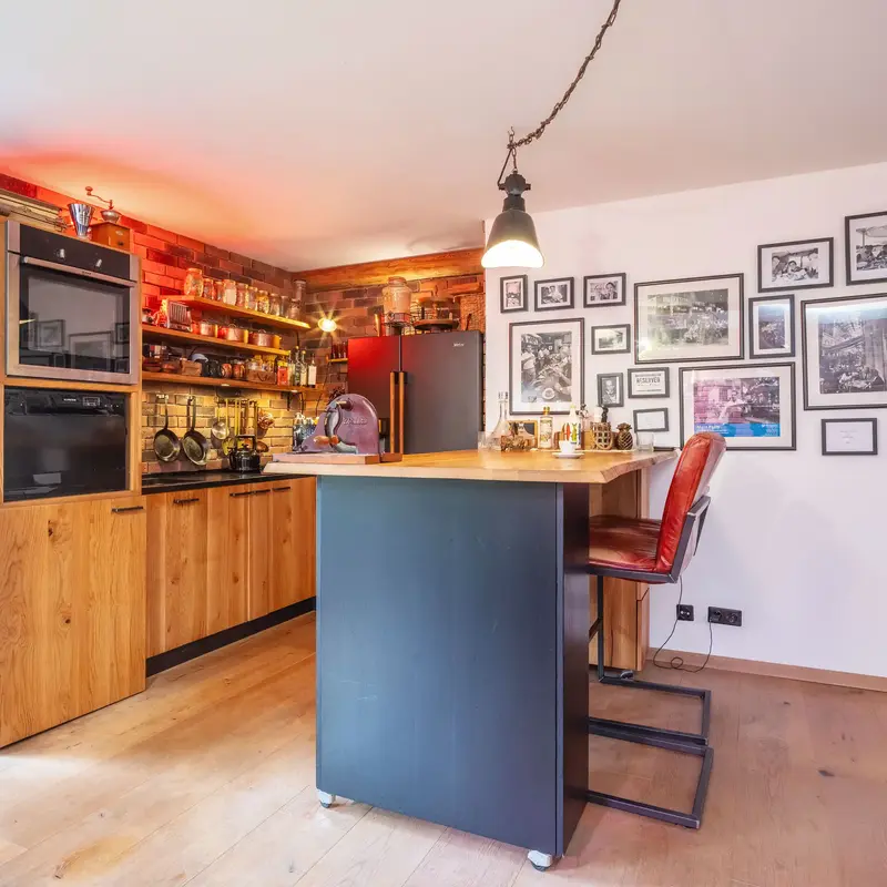 Das Loft am Olympiapark wurde mit Liebe zum Detail gestaltet – ein Spiel aus Licht, Struktur und Charakter. Hier treffen raue Materialien auf warme Akzente, industrielle Elemente auf wohnliche Leichtigkeit.